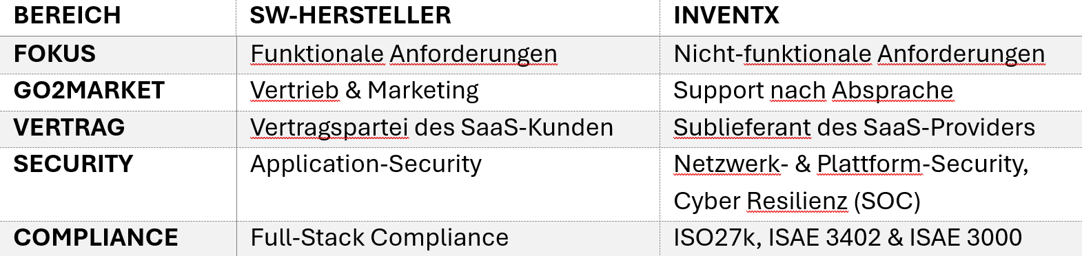 1. Vom Produkt zum Betrieb: Früher endete die Verantwortung des SW-Herstellers oft mit der Installation beim Kunden oder dem Release. Ein SaaS-Provider ist jedoch für die Verfügbarkeit, 7×24 Support, Cyber-Sicherheit und Auditierbarkeit verantwortlich.